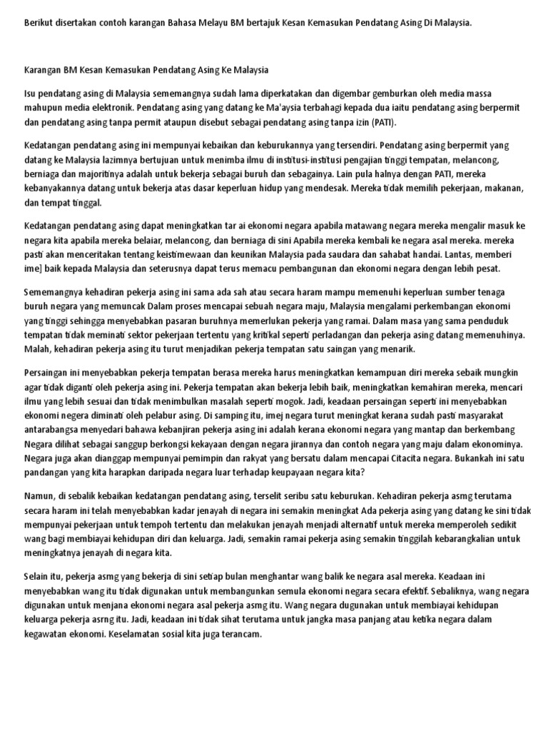 . Contoh Karangan Bunga di Pati. -Fakta adalah ayat topik yang membincangkan subtopik bagi topik utama yang dibincangkan pada bahagian pendahuluan. Berikut dikongsikan contoh karangan Kesan Kemasukan Pendatang Asing Dan Cara Mengawalnya untuk panduan semua.